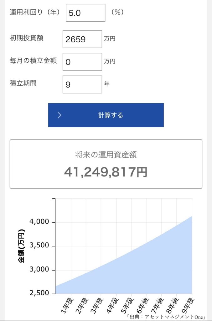 さらに9年運用すると4124万円ほどになる想定でした。